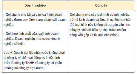 Như vậy, doanh nghiệp và công ty không giống nhau, công ty chỉ là “tập con” của doanh nghiệp.