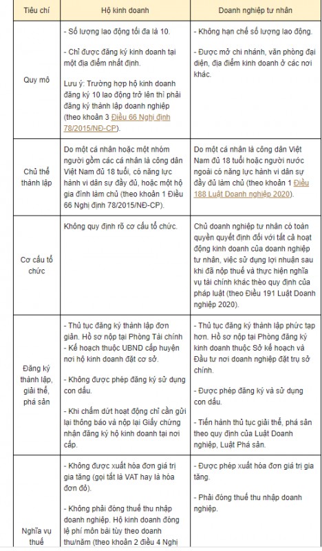 So sánh hộ kinh doanh và doanh nghiệp tư nhân