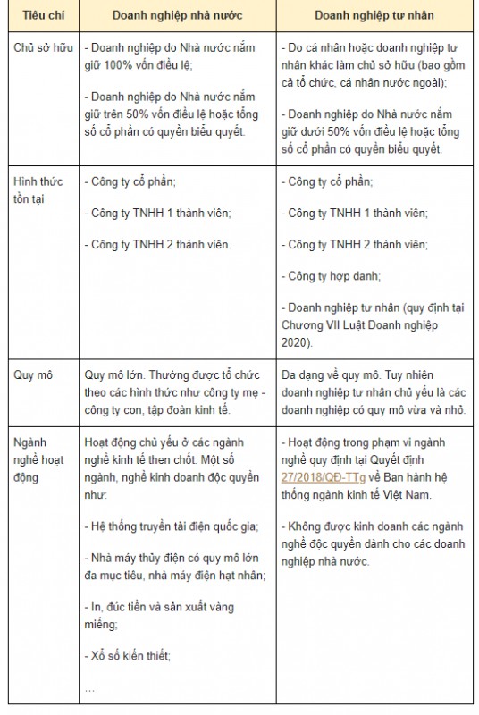 Điểm khác biệt giữa doanh nghiệp nhà nước và doanh nghiệp tư nhân