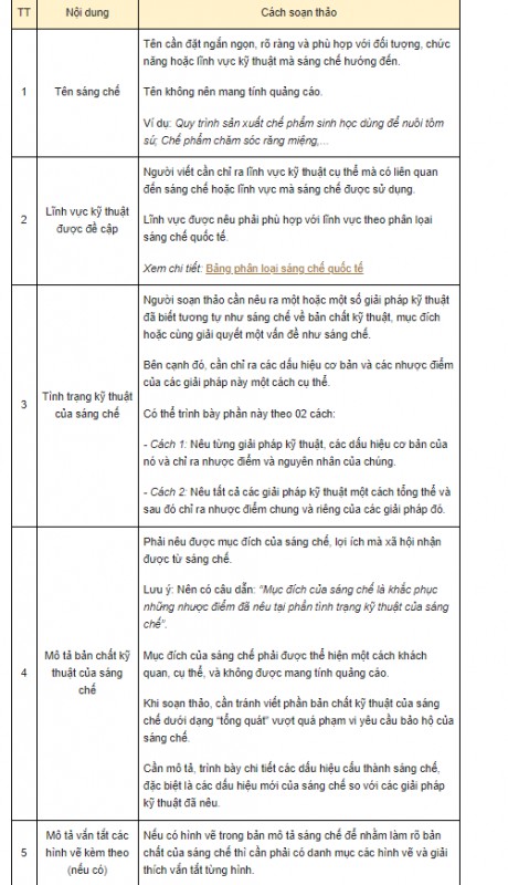 Thông thường, một bản mô tả sáng chế sẽ có 07 phần chính như sau: